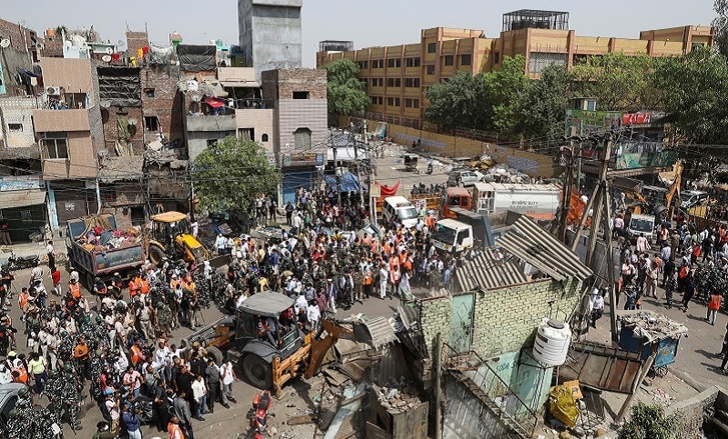 India's Supreme Court stayed the demolition of small, illegal retail shops in the wake of communal violence in New Delhi, shortly after civil authorities began tearing down the structures under the protection of police and security forces in a Muslim majority locality of the Indian capital.