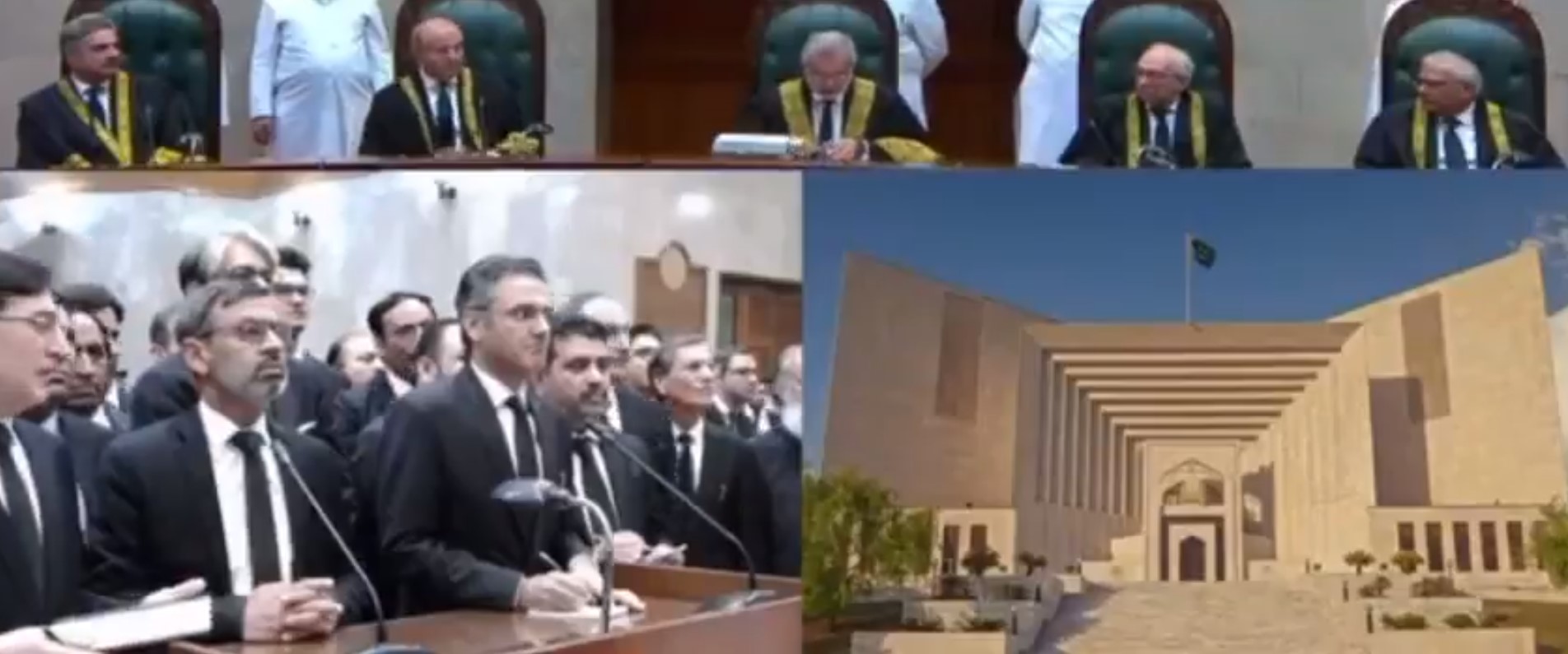 The larger bench comprised of Justices – Syed Mansoor Ali Shah, Munib Akhtar, Yahya Afridi, Aminuddin Khan, Jamal Khan Mandokhail, Muhammad Ali Mazhar, Ayesha Malik, Athar Minallah, Syed Hasan Azhar Rizvi, Shahid Waheed, Irfan Saadat Khan, and Naeem Akhtar Afghan.