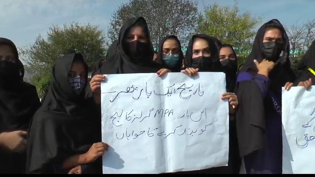 SWAT: Hundreds of girls students of Government Girls Degree College Khawazakhela in Swat district protested against the construction of a boys college on the land of the girls college, demanding the government to withdraw the decision forthwith.