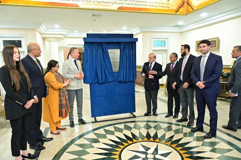 The Prime Minister unveiled the plaque while inaugurating the establishment of the first office of Menzies Aviation in Pakistan.