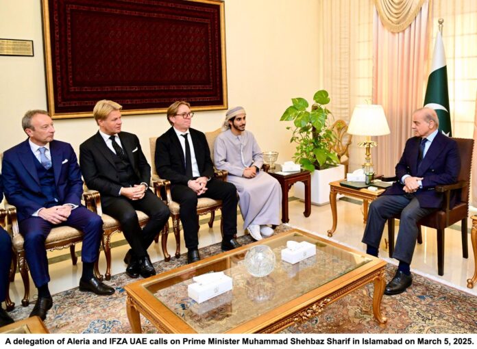 ISLAMABAD: Prime Minister Shehbaz Sharif on Wednesday met an 8-member delegation from the International Free Zones Authority (IFZA) of the United Arab Emirates and the Aleria Group here and witnessed a memorandum of understanding (MoU) exchanged between IFZA and the Board of Investment Pakistan for investment in existing Special Economic Zones (SEZs).