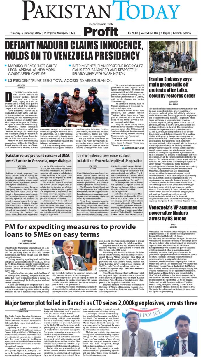 E-papers January 6, 2026 Epaper_26-01-06 KHI By Ahmed Salah-ud-din FacebookTwitterLinkedinWhatsAppEmail Previous articleEpaper_26-01-06 ISBNext articleEpaper_26-01-06 LHR Ahmed Salah-ud-din LEAVE A REPLY Cancel reply Comment: Please enter your comment! Name: Please enter your name here Email: You have entered an incorrect email address! Please enter your email address here Website: Save my name, email, and website in this browser for the next time I comment. RELATED ARTICLES E-papers Epaper_26-01-07 LHR E-papers Epaper_26-01-07 KHI E-papers Epaper_26-01-07 ISB E-papers Epaper_26-01-06 LHR E-papers Epaper_26-01-06 ISB E-papers Epaper_26-1-5 LHR Must Read E-papers Epaper_26-01-07 LHR January 7, 2026 Epaper_26-01-07 KHI January 7, 2026 Epaper_26-01-07 ISB January 7, 2026 PM Shehbaz calls privatization of loss-making SOEs top priority, orders fast-track reforms in PC January 6, 2026