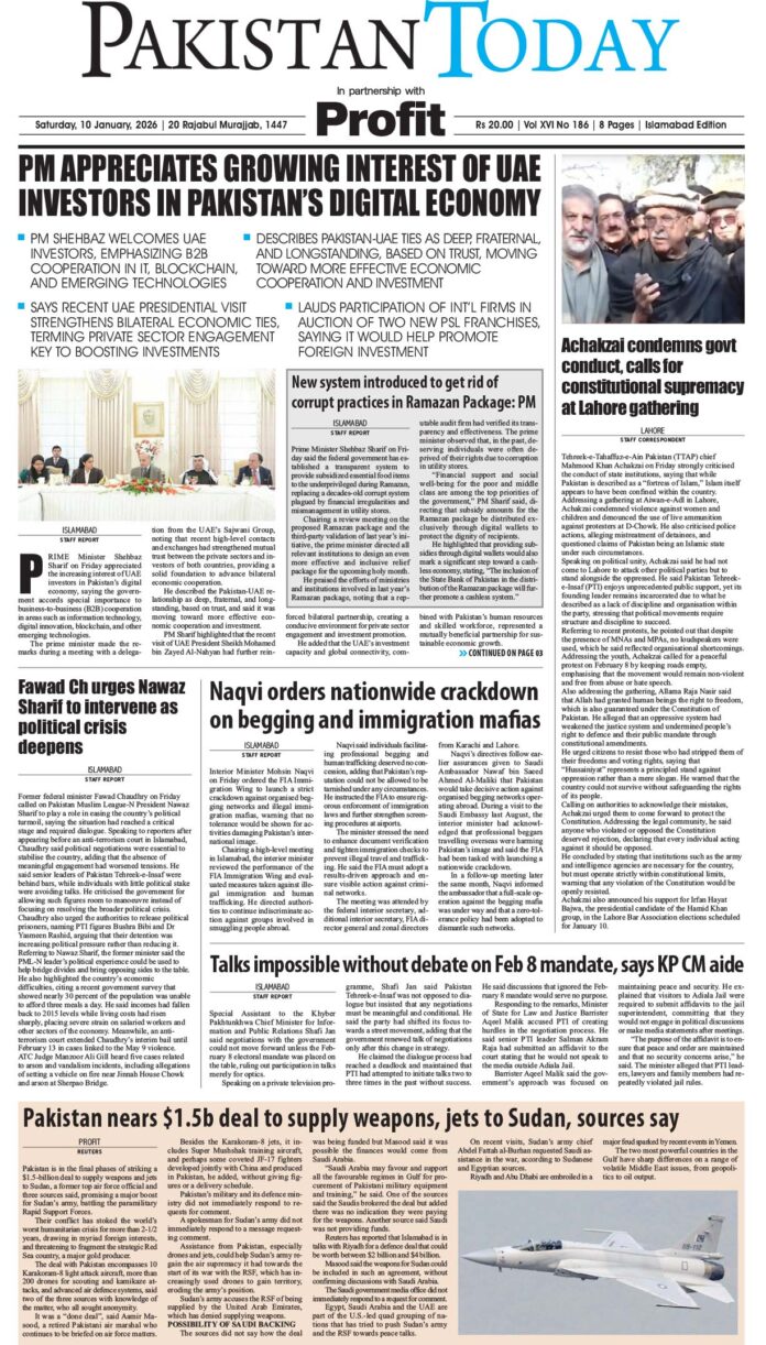 PM Shehbaz welcomes UAE Investors, emphasizing B2B cooperation in IT, blockchain, and emerging technologies Describes Pakistan-UAE ties as deep, fraternal, and longstanding, based...