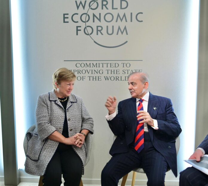 DAVOS/ISLAMABAD: Prime Minister Shehbaz Sharif on Wednesday underscored Pakistan’s commitment to fiscal discipline, revenue mobilisation, and sustainable development, highlighting the country’s improving economic indicators during a meeting with International Monetary Fund (IMF) Managing Director Kristalina Georgieva on the sidelines of the World Economic Forum (WEF) Annual Meeting.