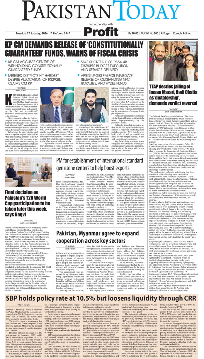E-papers January 28, 2026 Epaper_26-01-27 KHI By Imran Nisar FacebookTwitterLinkedinWhatsAppEmail Previous articlePresident Zardari meets UAE counterpart, pledges to deepen bilateral strategic, economic tiesNext articleEpaper_26-01-27 ISB Imran Nisar LEAVE A REPLY Cancel reply Comment: Please enter your comment! Name: Please enter your name here Email: You have entered an incorrect email address! Please enter your email address here Website: Save my name, email, and website in this browser for the next time I comment. RELATED ARTICLES E-papers Epaper_26-1-28 LHR E-papers Epaper_26-1-28 ISB E-papers Epaper_26-1-28 KHI E-papers Epaper_26-01-27 LHR E-papers Epaper_26-01-27 ISB E-papers Epaper_26-01-26 LHR Must Read E-papers Epaper_26-01-27 ISB January 28, 2026 President Zardari meets UAE counterpart, pledges to deepen bilateral strategic, economic ties January 28, 2026 Ahmed Baig to represent Pakistan on Asian Tour at Philippines Open January 28, 2026 Amir, Omer, Hamza advance in Millat Tractors Junior National Tennis Championship January 28, 2026