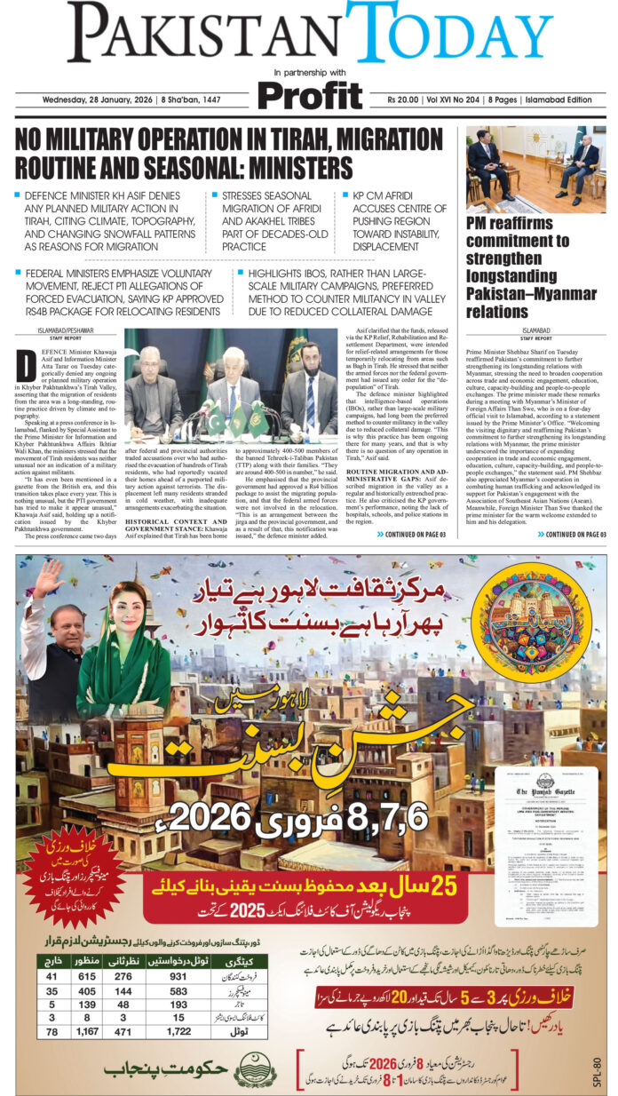 E-papers January 28, 2026 Epaper_26-1-28 ISB By Imran Nisar FacebookTwitterLinkedinWhatsAppEmail Previous articleEpaper_26-1-28 KHINext articleEpaper_26-1-28 LHR Imran Nisar LEAVE A REPLY Cancel reply Comment: Please enter your comment! Name: Please enter your name here Email: You have entered an incorrect email address! Please enter your email address here Website: Save my name, email, and website in this browser for the next time I comment. RELATED ARTICLES E-papers Epaper_26-1-28 LHR E-papers Epaper_26-1-28 KHI E-papers Epaper_26-01-27 LHR E-papers Epaper_26-01-27 ISB E-papers Epaper_26-01-27 KHI E-papers Epaper_26-01-26 LHR Must Read E-papers Epaper_26-01-27 KHI January 28, 2026 President Zardari meets UAE counterpart, pledges to deepen bilateral strategic, economic ties January 28, 2026 Ahmed Baig to represent Pakistan on Asian Tour at Philippines Open January 28, 2026 Amir, Omer, Hamza advance in Millat Tractors Junior National Tennis Championship January 28, 2026