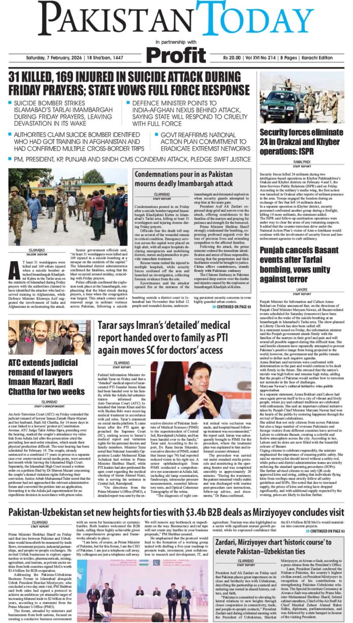 E-papers February 7, 2026 Epaper_26-02-7 KHI By Ahmed Salah-ud-din FacebookTwitterLinkedinWhatsAppEmail Previous articleEpaper_26-02-7 ISBNext articleEpaper_26-02-7 LHR Ahmed Salah-ud-din LEAVE A REPLY Cancel reply Comment: Please enter your comment! Name: Please enter your name here Email: You have entered an incorrect email address! Please enter your email address here Website: Save my name, email, and website in this browser for the next time I comment. RELATED ARTICLES E-papers Epaper_26-02-7 LHR E-papers Epaper_26-02-7 ISB E-papers Epaper_26-02-6 LHR E-papers Epaper_26-02-6 KHI E-papers Epaper_26-02-6 ISB E-papers Epaper_26-02-4 LHR Must Read Letters Wheat for all February 7, 2026 Food, shelter and clothing are fundamental necessities of human beings. Currently, flour prices in Sindh have been rising due to delayed government action on... End gender abuse February 7, 2026 31 killed, 169 injured in Islamabad suicide attack during Friday prayers; state vows full force response February 7, 2026 Epaper_26-02-7 LHR February 7, 2026
